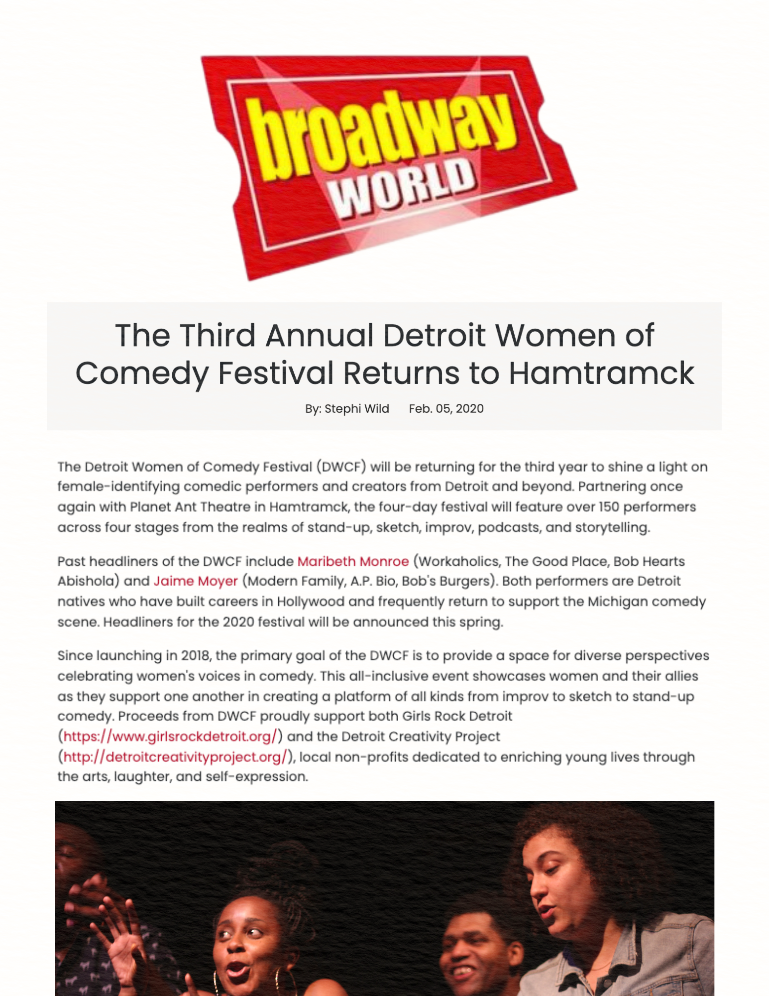 The Detroit Women of Comedy Festival is a celebration of diverse perspectives in comedy and creativity from Metro Detroit and beyond.