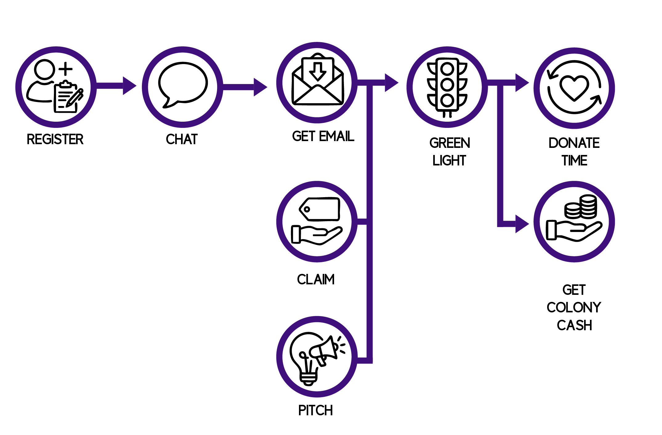 As a registered volunteer, you have the option to be compensated in "Colony Cash," which tracks every hour you contribute.
